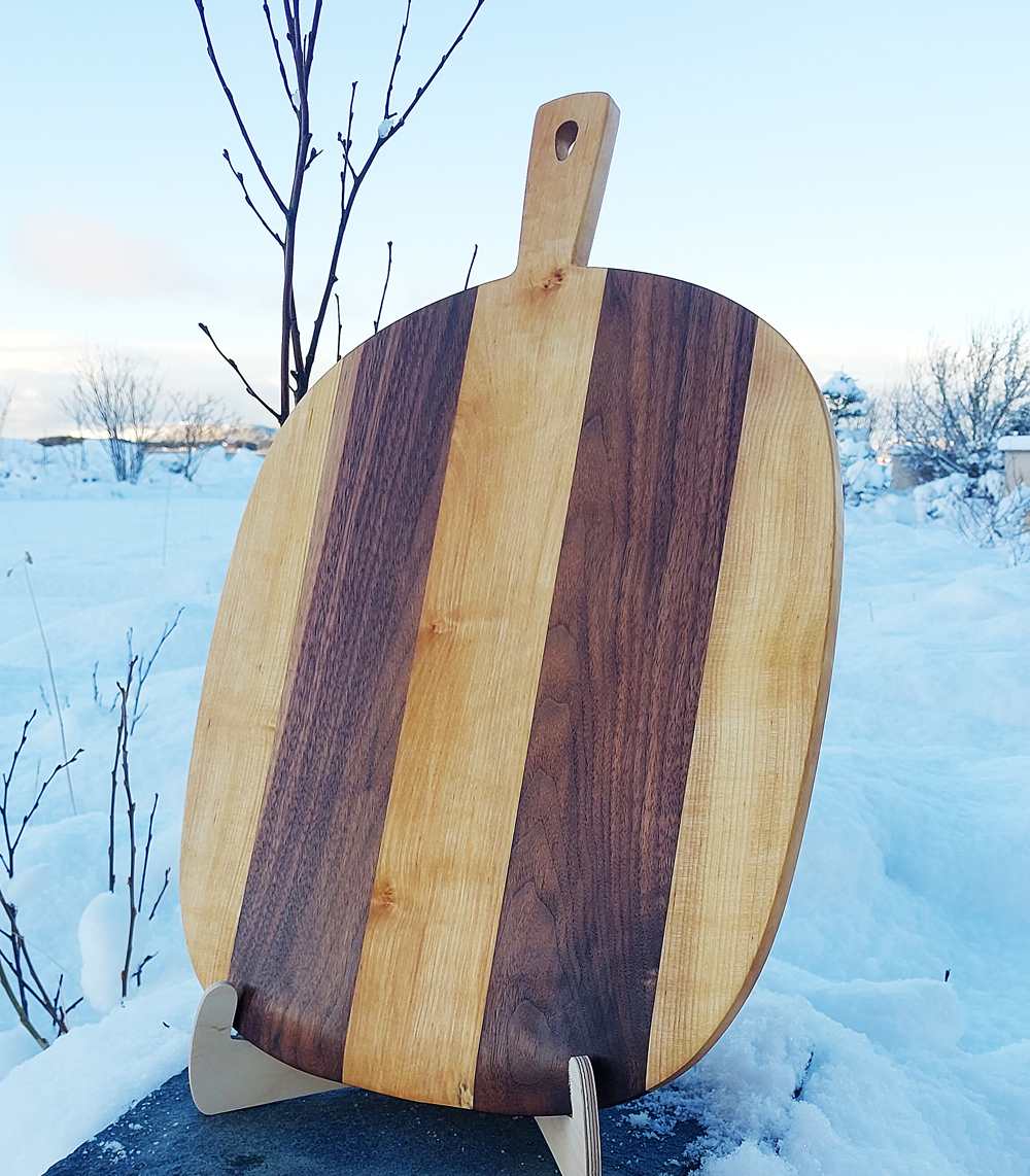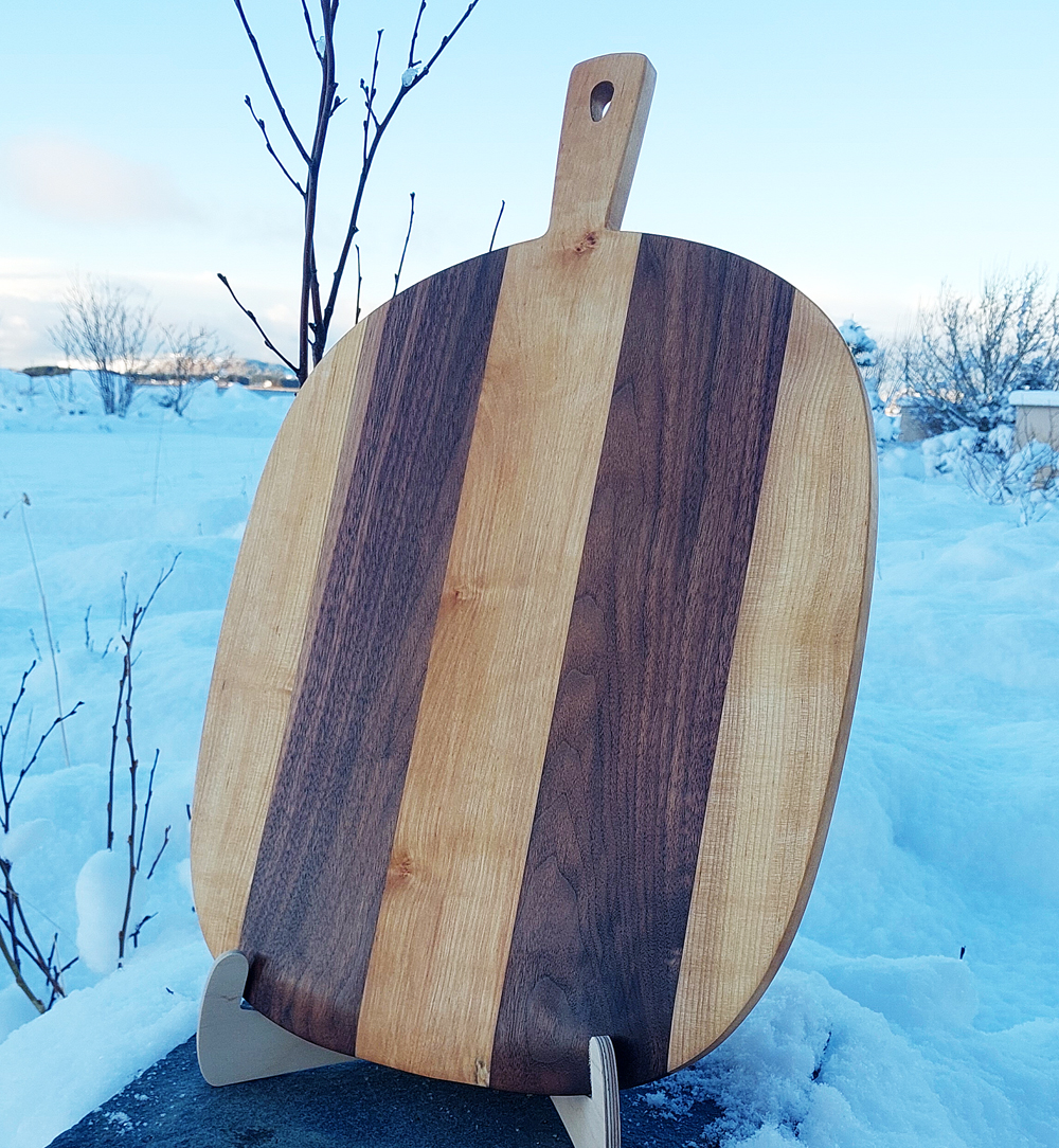 Pizzafjøl laget av valnøtt og lokal bjørk fra Valderøya.