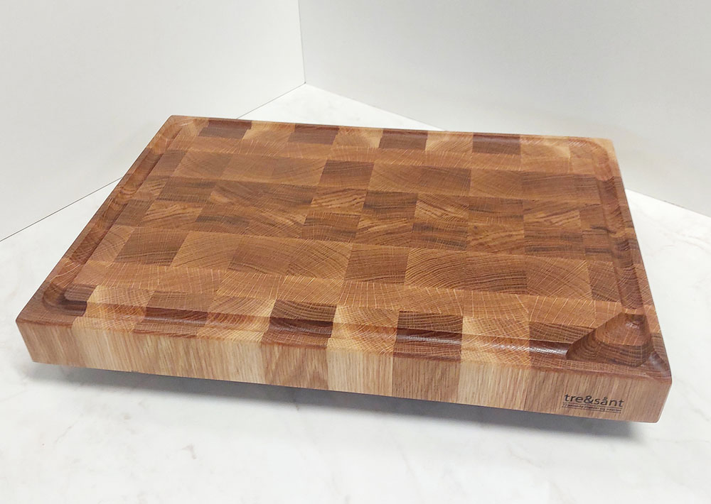 Skjærefjøl i eik endeved med saftarand og oppsamling.