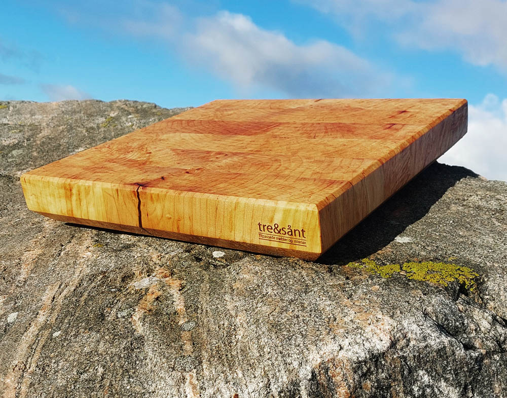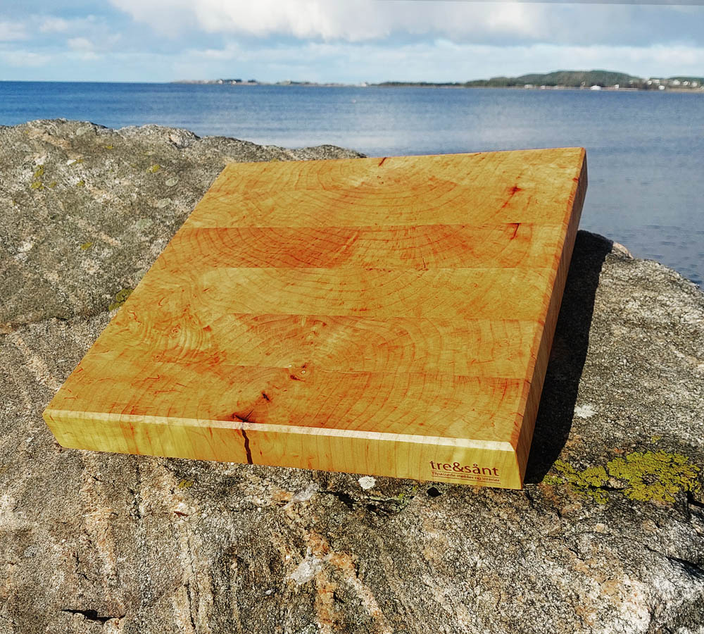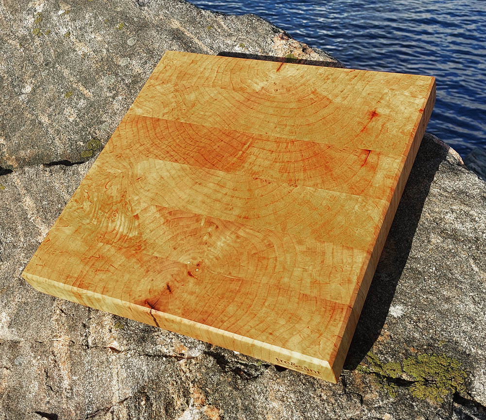 Kvadratisk skjærefjøl i lokal lønn endeved med mye mønster